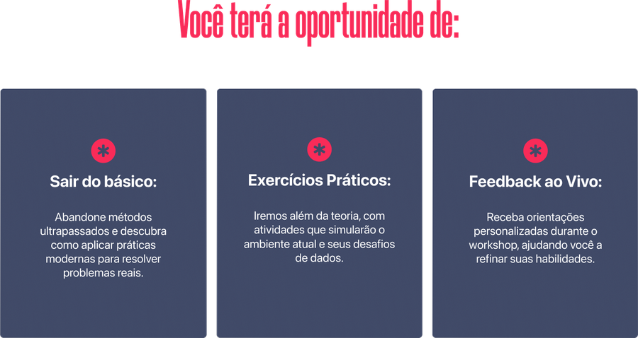 Os dados são o novo petróleo, mas apenas se soubermos refiná-los corretamente. O foco do Workshop é mostrar a urgência da modernização e como você pode se diferenciar no mercado, deixando de ser apenas um "criador de dashboard" e passando a atuar estrategicamente no sucesso de sua organização.